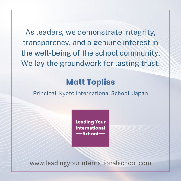 Matt has led schools in several different contexts, including the UK, Bahrain, Egypt, and Morocco, and is now Principal at Kyoto International School in Japan. He is the BSME country representative for Egypt and is a Leadership Performance Coach and NPQ Assessor for Best Practice Network. He has contributed to many internationally focused articles in the educational press, has spoken at leading educational conferences, and is an International Subject Matter Expert for the SELIN Club organisation.